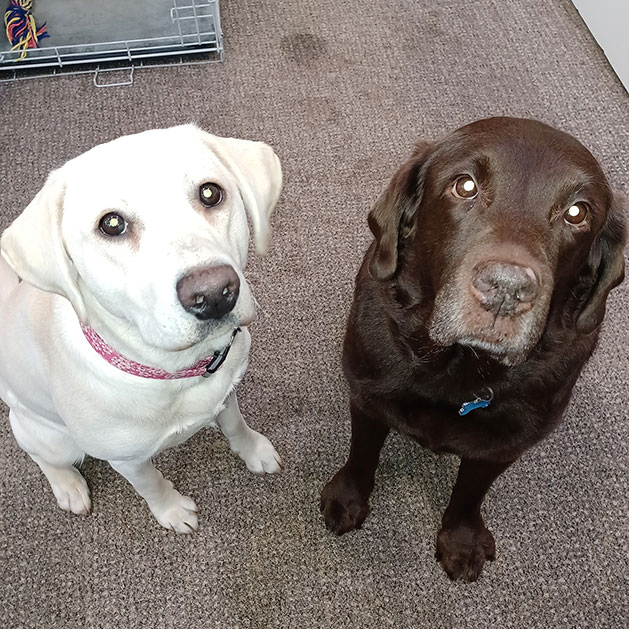 Headed up by Chocolate Labrador Max, the Happiness & Recycling Team provide a hoovering and recycling service, specialising in crusts and crumbs and are experts in reducing any paper or cardboard to manageable pieces in a matter of minutes. Max and his assistants fellow Labrador Mabel and Cocker Spaniel Socks also give a friendly welcome to all our visitors in the office.